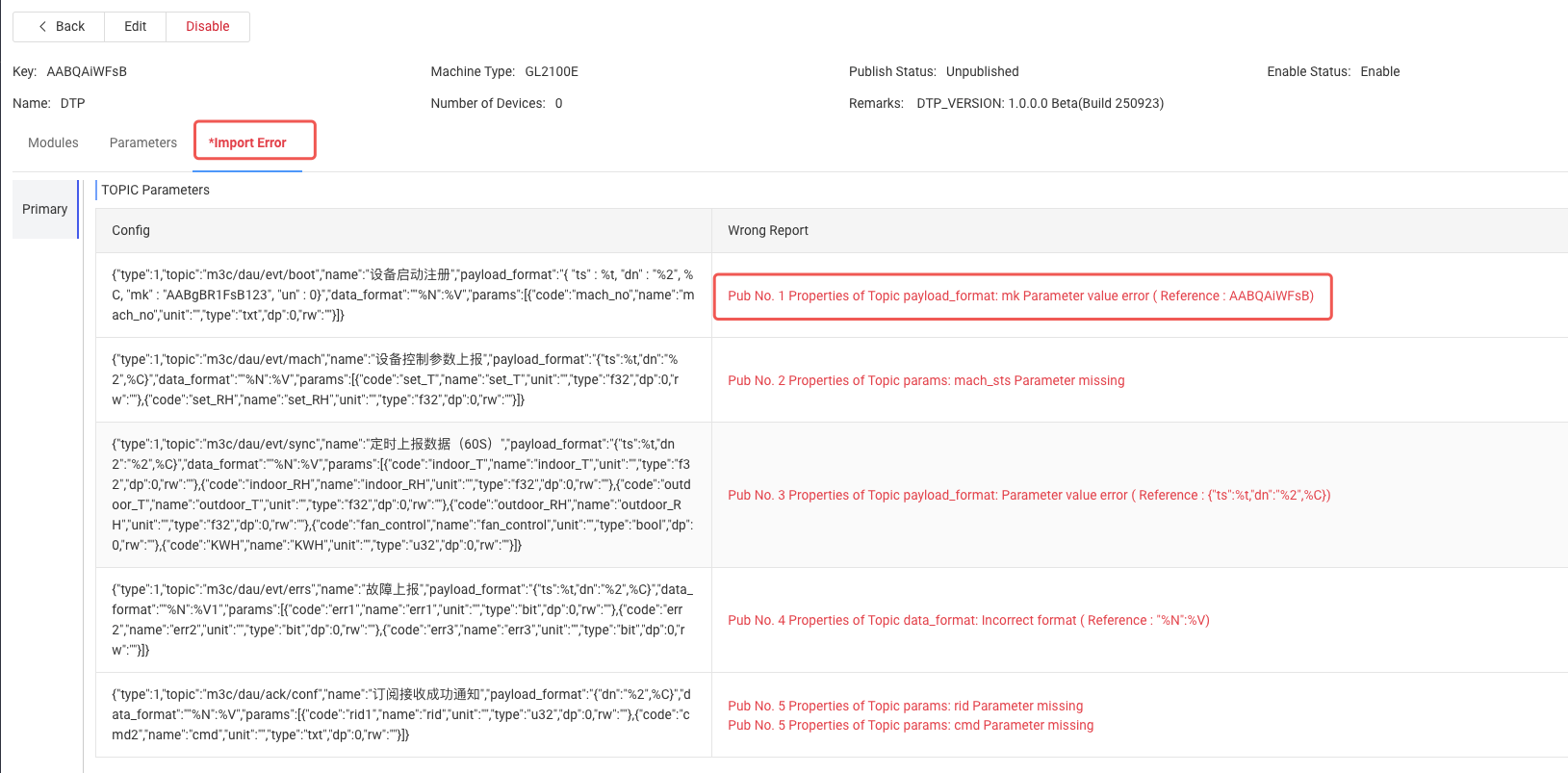 - If there is an error in the import, please refer to the error message, modify the MQTT related settings of the project, and then re-export and re-import